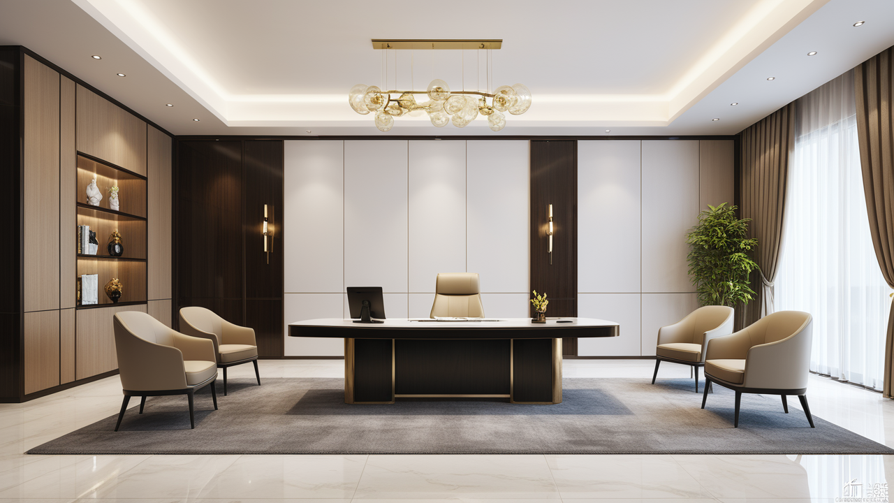 在具體的家具布置方案中,需要根據辦公室的實際情況和需求進行定制,保證家具的布置能夠滿足員工的工作需要,并且與企業的整體風格和文化相匹配。